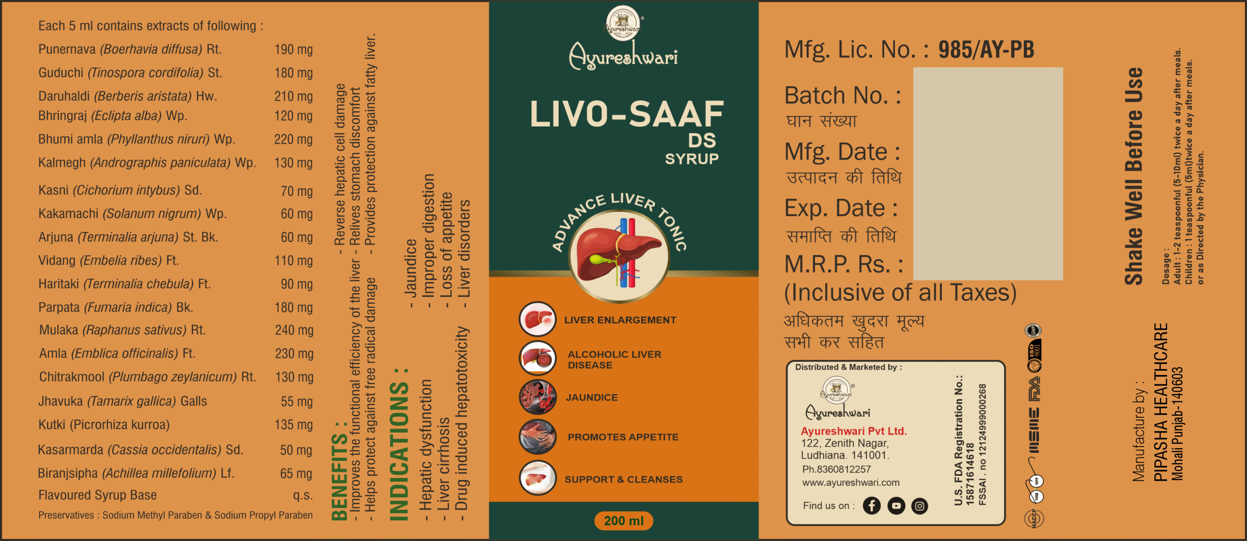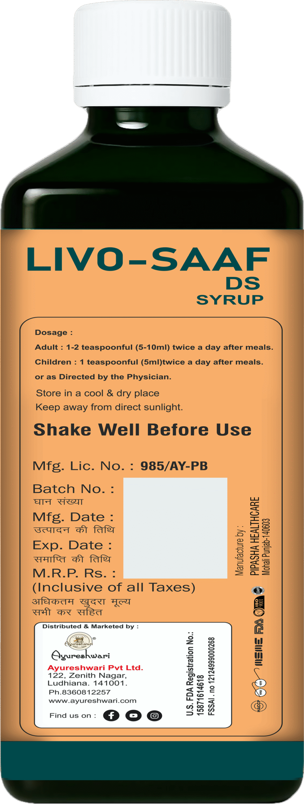 Give your liver the care it deserves — cleanse, protect, and revive with Ayureshwari Livo-Saaf DS Syrup!