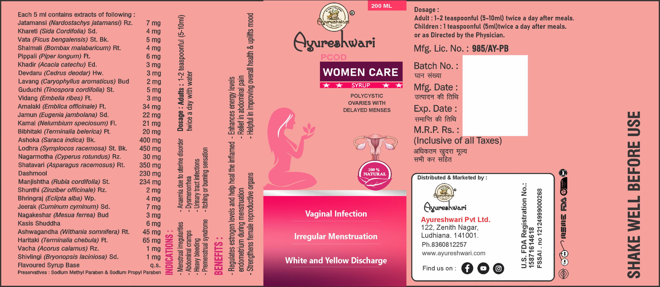Women Care is a unique blend of premium Ayurvedic herbs designed to support women’s overall wellness, hormonal balance, and inner vitality. Formulated by experts, it helps regulate menstrual cycles, ease discomfort, and promote energy, beauty, and emotional harmony.
