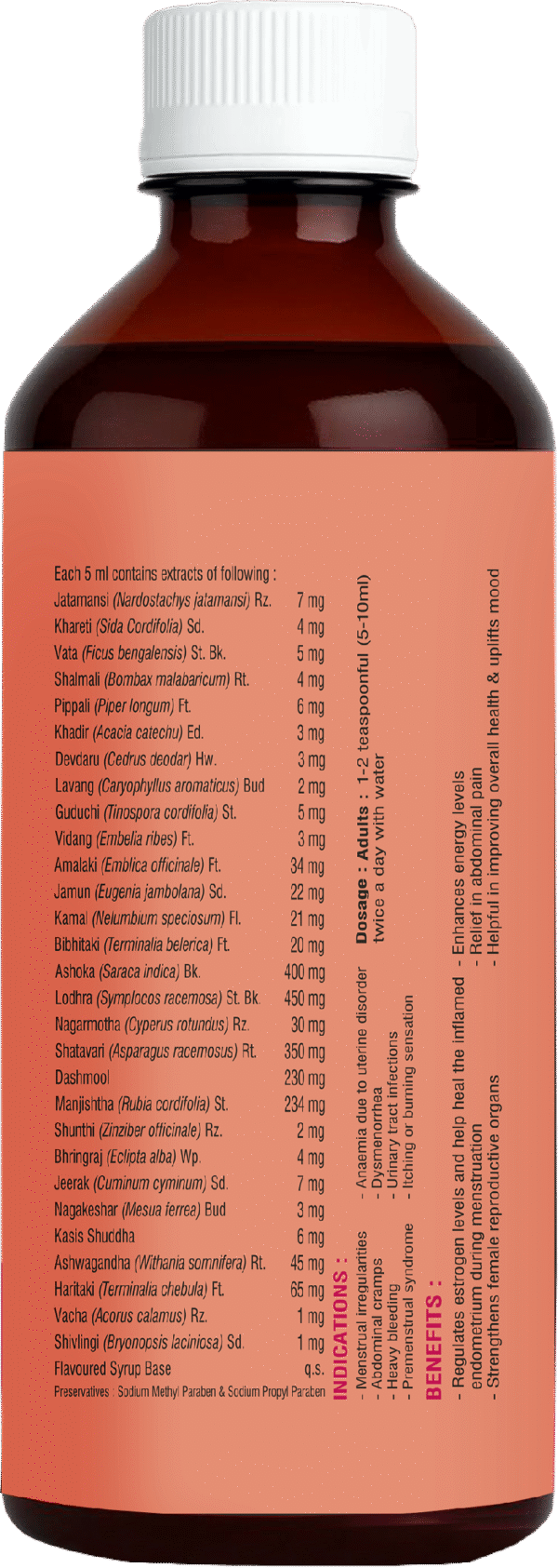 A synergistic mix of Ashoka, Lodhra, Shatavari, Dashmool, Yashtimadhu, and other time-tested herbs known for their restorative and rejuvenating properties.